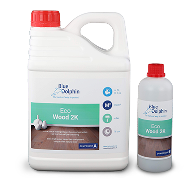 Eco Wood 2K extra mat is een twee componenten polyurethaan lak op waterbasis met een extra matte, natuurlijke hout uitstraling. Door het gebruik van speciale harsen geeft deze lak het (eiken) houten oppervlak een uiterst matte en natuurlijke uitstraling. Eco Wood 2K heeft uitstekende fysische/chemische eigenschappen en is geschikt voor zowel projectmatig als huishoudelijk gebruik. Verwerk Eco Wood 2K rechtstreeks op het hout in drie lagen voor de 'onbehandelde look' uitstraling. Ook te gebruiken i.c.m. alle Blue Dolphin grondlakken, zoals de Eco Starter, Super Basic 2K en Super Intense 2K. Daarnaast is deze 'natural look' lak ook toepasbaar als lakafwerking over de lichtere tinten van de One Coat 2K Oil. Bij verwerking van de Eco Wood 2K lak over BD One Coat 2K Oil is het belangrijk het geoliede oppervlak eerst min. 30 uur te laten drogen met voldoende ventilatie, voordat de lak aangebracht wordt.