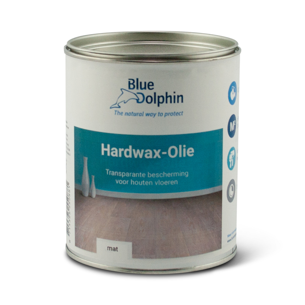 Blue Dolphin Hardwaxolie is een hardwaxolie die uitermate geschikt is voor het beschermen van onbehandeld hout. Het beschermt, voedt uw vloer en is vuil- en waterafstotend. Blue Dolphin Hardwaxolie is eenvoudig aan te brengen met een roller of vloerborstel. De hardwaxolie dient in twee dunne lagen aangebracht te worden voor een goede bescherming. Het is in een matte en zijdeglans uitvoering te verkrijgen. ook aan een witte variant is gedacht. Blue Dolphin Hardwaxolie is plaatselijk te bewerken waardoor het geheel schuren van uw vloer door slijtageplekken niet nodig is. Onderhoud van uw hardwaxvloer doet u met Blue Dolphin Onderhoudswas en voor de matte uitvoering Blue Dolphin Onderhoudsolie. Wekelijkse reiniging kan met Blue Dolphin Multicleaner Eco of Blue Dolphin Fix & Fill Eco. Vlekken of sterk vervuilde vloeren kunt u behandelen met Blue Dolphin Intensiefreiniger. indien u een kleur wilt gebruiken kunt u een grondering aanbrengen op kleur met Blue Dolphin Kleurolie.