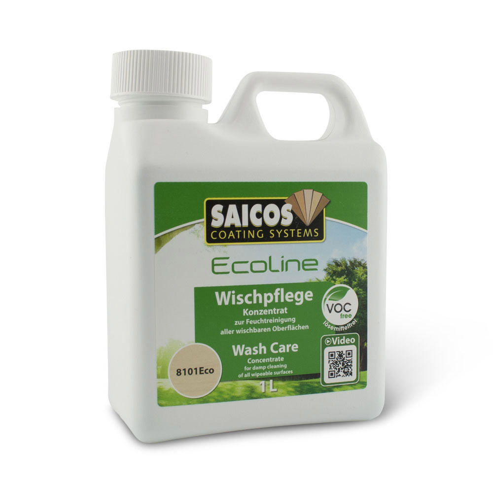Saicos Eco Washcare is een geconcentreerde millieuvriendelijke reiniger voor houten vloeren afgewerkt met o.a. Saicos hardwaxolie. Ook is deze reiniger geschikt voor het schoonmaken van laminaat, pvc en linoleum. Voor het onderhoud kunt u Saicos Verzorgingswas of Saicos Ecoline Wax Care gebruiken. Intensieve reiniging of vlekken verwijderen kunt u doen met de Saicos Magic Cleaner.