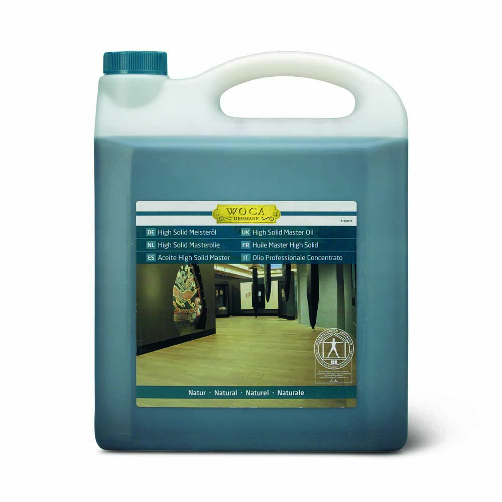 Woca High Solid Masterolie is een basisolie voor professioneel gebruik. Door het hoge vaste stof gehalte is het mogelijk om deze olie in 1 laag aan te brengen. Neem wel de vloer eerst af met Woca Intensiefreiniger voor een betere opname van de olie. Deze olie is te verkrijgen in een naturel, witte en een extra witte variant. Woca HS Masterolie maakt uw vloer vuil- en waterafstotend. Deze olie is alleen aan te brengen in combinatie met een poetsmachine. Wekelijkse reiniging van vloeren die zijn behandeld met Woca HS Masterolie kunt u doen met Woca Natuurzeep, voor periodieke reiniging gebruikt u Woca Conditioner en jaarlijks kunt u de Woca Onderhoudsolie gebruiken in combinatie met de Woca Intensiefreiniger.